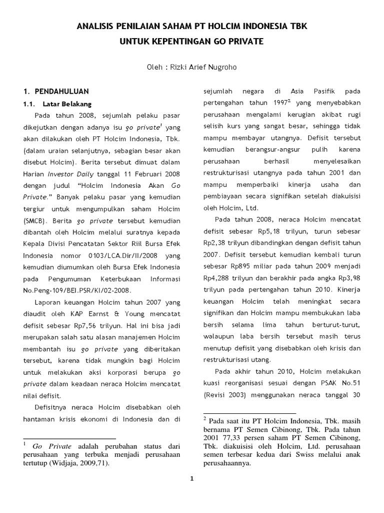 Informasi finansial holcim indonesia tbk. Berdasarkan pojk 9/2018, setelah transaksi pengambilalihan saham ini terlaksana, semen indonesia akan menyampaikan pernyataan penawaran tender wajib atas 1.483.287.180 lembar saham atau setara 19,4 persen kepemilikan saham holcim indonesia yang dimiliki oleh pemegang saham publik, kepada ojk. Juga, meningkatkan efisiensi khususnya biaya distribusi dan bahan baku sekaligus memperkuat posisi.