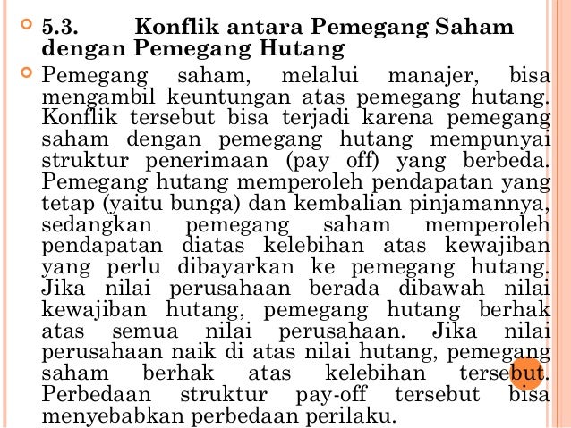 Perbedaan kunci antara utang dan ekuitas. Harga saham mereka adalah rp1095, adro memberikan yield 9.95 persen. Pemegang saham adalah pihak yang paling dirugikan apabila terjadi konversi hutang ke dalam modal.